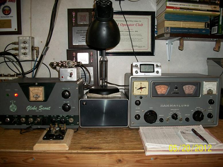 Here it is in operation with the Hammerlund HQ-110. I've made two QSO's with it using a 7.040 crystal, both contacts yielded good reports and the radio appears to be strong. I do plan to replace the old paper caps and get new screen print for the front panel later.