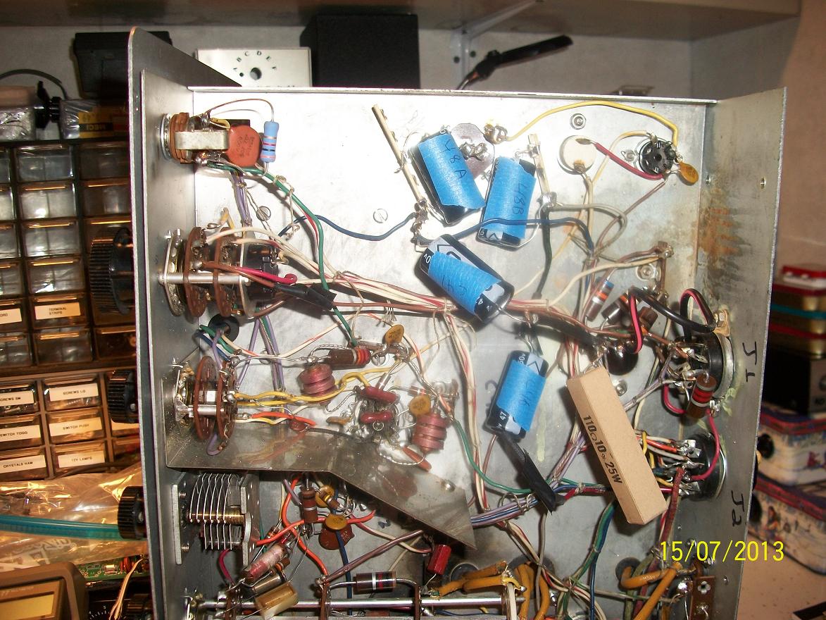 Next on to the rewiring. I tried to make things a bit neater, fixed the soldering, and shorten the leads where possible. It was during this part I found C49 a .005pf cap missing.
